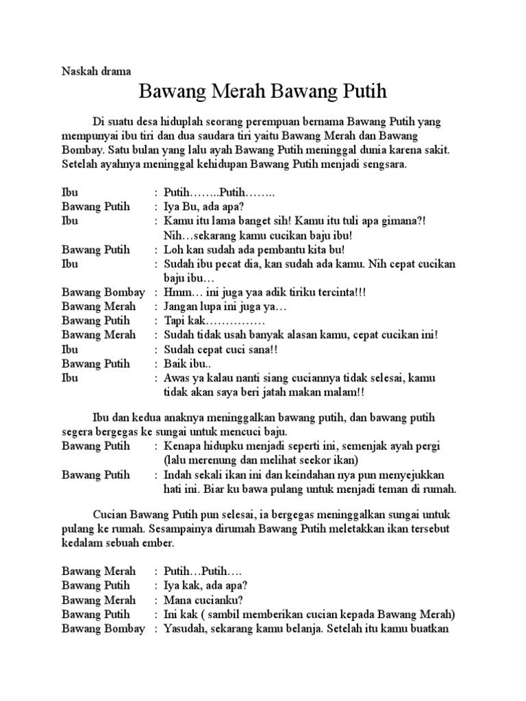 Naskah Drama Cerita Rakyat Bawang Merah Bawang Putih Pdf